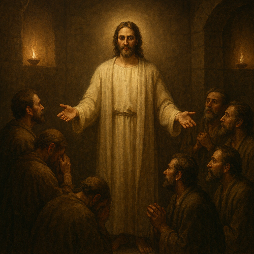 In this quiet evening moment, Jesus gave His followers not only comfort but purpose. He breathed the Holy Spirit upon them — not with fire and wind, but with breath and blessing. This is the Savior who enters locked rooms, calms trembling hearts, and whispers the beginning of the mission that will change the world.